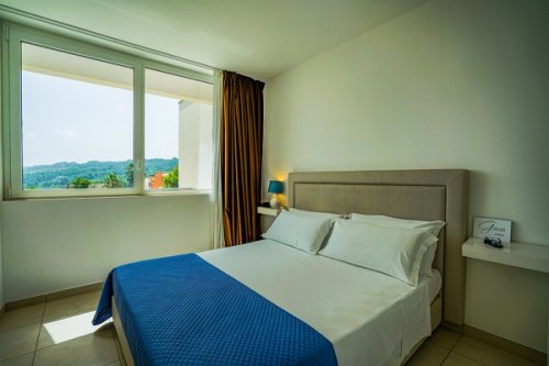 Sistemazioni: Gli appartamenti, posizionati all'interno di un edificio a 2 piani, servito da ascensore, hanno una superficie minima di 50 mq, sono dotati di bagni con doccia, TV LCD, aria condizionata, cassetta di sicurezza, frigorifero (fornitura su richiesta), balcone o patio esterno con tavolo e sedie, angolo cottura (con supplemento).