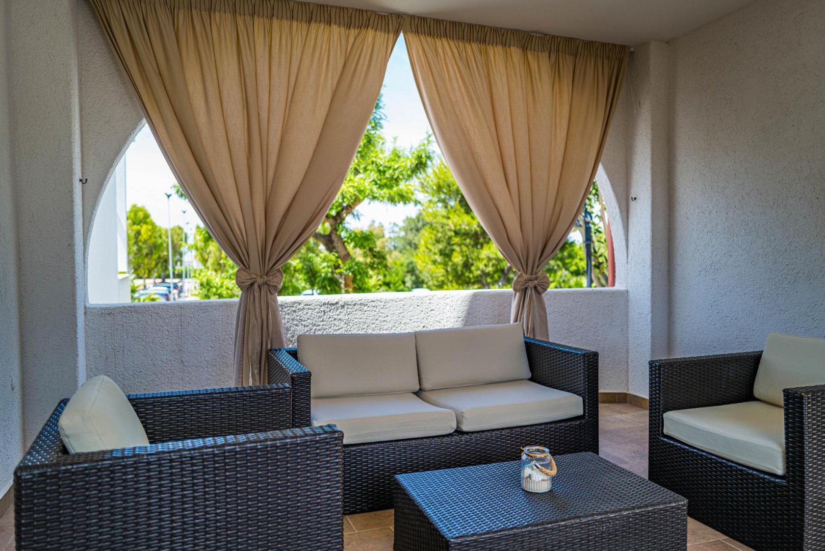 Le Suite recentemente rinnovate, sono caratterizzate da arredi moderni e composte da due ambienti separati: una camera con letto matrimoniale ed un soggiorno con poltrone letto. Le suite dispongono di balcone oppure di piccolo patio, attrezzati con sedie e tavolino. Le camere sono fornite di aria condizionata. asciugacapelli, cassaforte, telefono, tv e minibar (riempimento su richiesta, a pagamento), bagno dotato di doccia.