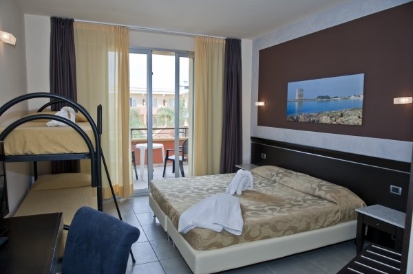 Le camere si distinguono in camere doppie con letto aggiunto Girasole con vista sul paese e camere Palme con vista piscina. Disposte su più piani, sono dotate di balcone, aria condizionata, tv frigobar, telefono, cassaforte, servizi con doccia ed asciugacapelli. Possibilità di letto aggiunto per bambini in quasi tutte le camere. Disponibili, su richiesta, quadrupla con patio a 4 letti (2 letti Queensize) e suite con salottino e camera da letto, servizi con doccia, ampia terrazza arredata e vasca idromassaggio esterna, servizio spiaggia in prima fila incluso.