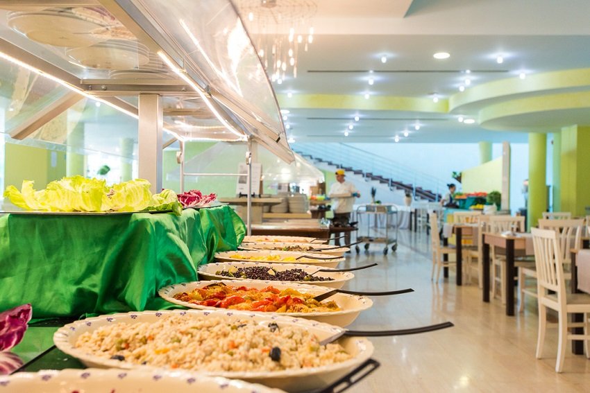 Il trattamento di All Inclusive con prma colazione, pranzo e cena a buffet, acqua, vino e bibite inclusi ai pasti, pen bar ad orari prestabiliti presso il bar della piscina e centrale con bibite analcoliche, birra e caffetteria. In spiaggia con è previsto servizio di All Inclusive. Celiachia/ intolleranze alimentari: La cucina è UNICA e non è certificata come Gluten Free. Secondo l'informativa al Consumatore ai sensi del Regol. CE1169/11 si evidenzia che gli alimenti somministrati nel nostro esercizio contengono o possono contenere i seguenti Allergenti: Glutine, Crostacei, Uova, Pesce, Arachidi, Soia, Latte Frutta a guscio, Sedano, Senape, Sesamo, Molluschi.