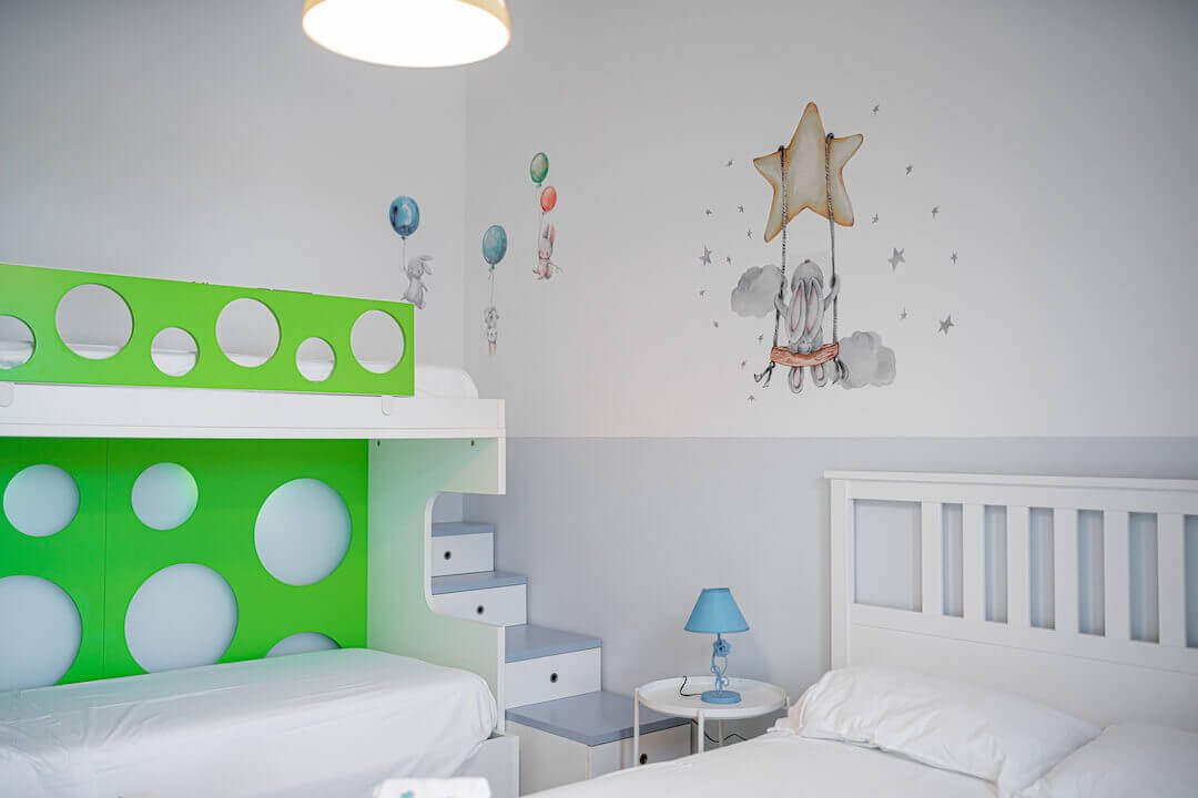 Camera Kids.Camera accogliente e colorata , è la soluzione ideale per le famiglie con bimbi piccoli. Dotata di letto matrimoniale e un letto con soppalco e oblò luminosi, studiato proprio per consentire ai nostri piccoli ospiti un soggiorno all’insegna della dolcezza
