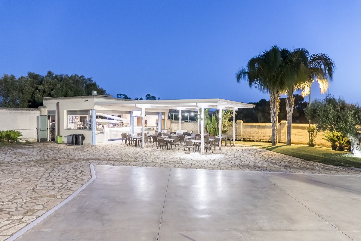 Servizi: A disposizione degli ospiti un ampio parcheggio ombreggiato e video-sorvegliato. Ristorante nel corpo centrale, cuore del Resort, che ricorda proprio le antiche masserie del Salento. Ristorante con servizio al tavolo con scelta tra due primi e due secondi di carne e pesce., buffet di antipasti e insalate, frutta e dolci. Ricca colazione servita nella sala interna, con prodotti salentini e internazionale. Serata tipica pugliese una volta a settimana dove si potranno gustare i piatti tipici della tradizione salentina e pugliese. Ottima selezione di vini locali da scegliere per i pasti.