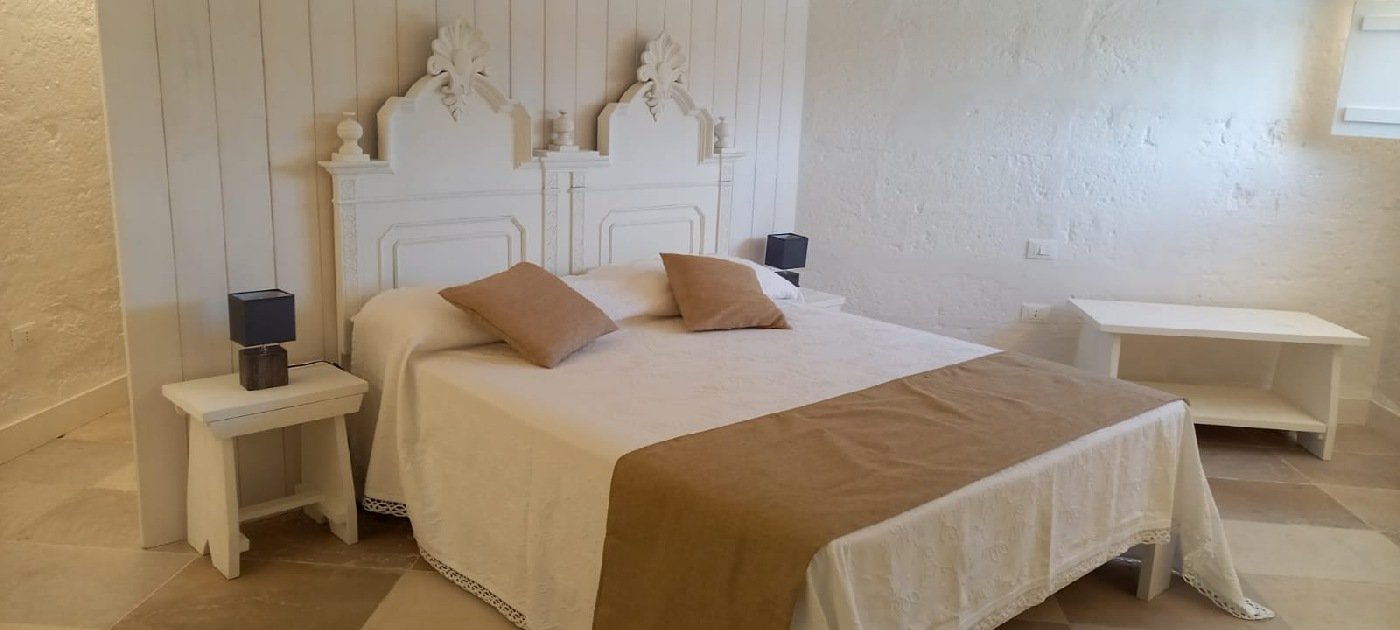 La struttura è caratterizzata da doppie volte in tufo, pavimenti in pietra originale dell’epoca, muri spessi fino a un metro, tipico delle abitazioni delle masserie salentine.