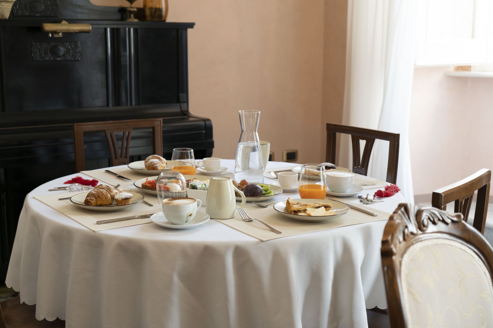 Suite: Il trionfo dello spazio e della luce: solo così si potrebbe descrivere questa Suite, un ambiente unico, con bagno privato, in cui tutto il fascino di un florido passato rivive gioioso nei colori e negli arredi originali, sapientemente conservati.