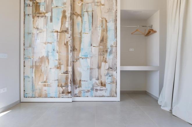 Nel grande open space, luminoso e ricercato, ci sono la cucina, integralmente a scomparsa grazie ad imponenti pannelli in kerlite dipinti a mano, un divano letto doppio, confezionato artigianalmente con tessuti ignifughi e antimacchia, ed 1 letto matrimoniale.