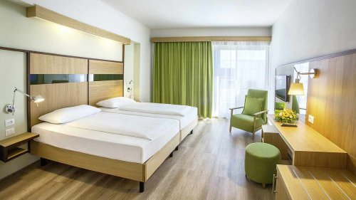 Si tratta di una camera con balcone o terrazzo, ha letto matrimoniale (letti singoli adiacenti che possono essere spostati), alcune con un divano letto angolare per il terzo ospite (dimensioni letto: 2,00 m x 0,90 m) e una brandina per il quarto ospite (1,80 m x 0,80 m). I bambini fino ai 23 mesi di età viaggiano senza costi aggiuntivi. Per disporre di una culla in camera, effettuare la richiesta durante la prenotazione. Caratteristiche: Aria condizionata/riscaldamento (regolabile autonomamente in base alla stagione) Doccia, WC, asciugacapelli, specchio per trucco Cassaforte, frigorifero, TV a schermo piatto (TV satellitare con canali internazionali), telefono Pavimento: piastrelle Non fumatori Servizio: WIFI incluso in molte aree comuni, postazioni internet disponibili Servizio di pulizia quotidiano, cambio biancheria (letto) due volte a settimana, asciugamani sostituiti su richiesta. Capienza: Adatta per max 4 adulti e un bambino sotto i 2 anni. Disponibile anche uso singola (disponibilità limitata). Leggi tutto »...