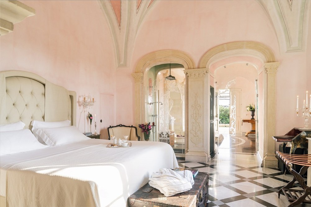 La suite, adiacente al peristylium di Villa Costa, è contraddistinta dallo stile francese e dai suggestivi riflessi dorati che decorano le volte a stella. La sala da bagno è caratterizzata da una piscina privata in pietra antica, finemente decorata. Elementi floreali e innocenti putti impreziosiscon ono la suite dall’elegante pavimento in marmo. L’alcova vanta un grande camino in tipica pietra e un arredo ricercato. Una veranda privata con comodo salottino, permette di godere della vista sul giardino. La temperatura nella camera non supera i 30°C. Leggi tutto »...