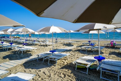 Spiaggia: Da 80 a 400 m ca, di sabbia, attrezzata. Servizio spiaggia incluso nelle quote a partire dalla 2° fila (1 ombrellone + 2 lettini ad unità abitativa).
