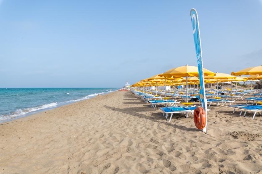 La struttura sorge a soli 150 metri dal lido privato di sabbia fine e attrezzato con ombrelloni e lettini. Il lido è raggiungibile a piedi percorrendo la zona servizi e attraversando una stradina secondaria sterrata che costeggia il litorale. A 50 metri, oltre la duna all'interno della struttura, beach bar, docce e servizi igienici.
