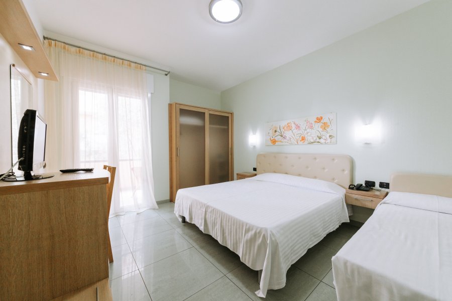 Le camere classic fino a 4 posti letto, composte da un letto matrimoniale e 3° e 4° letto singolo. Possibilità di camere vista piscina (con supplemento).
