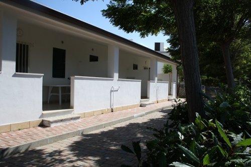 Villino trilocale 6 posti letto in muratura: soggiorno con angolo cottura e divano letto matrimoniale, 2 camere matrimoniali, servizi igienici con doccia calda, veranda esterna coperta, dotato di aria condizionata (circa 50 mq. Esclusa la veranda).