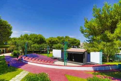 TESSERA CLUB: Include uso piscina di acqua dolce con area baby (30 cm), uso dei 5 campi da tennis in mateco, 1 campo da calcio e 1 da calcetto in erba naturale, 1 campo da golf, beach volley, ping pong, 3 campi da bocce, spazio fitness e sala pesi, animazione diurna con sorprese al mare, giochi, tornei, sport, musica, balli di gruppo, animazione serale con spettacoli di cabaret, musical e varietà, pianobar. Numerose le attività sportive da praticare: spin bike, acquagym, step, windsurf, street basket, canoa, outdoor fitness-yoga, corsi collettivi di tiro con l’arco, windsurf e tennis, tornei di calcio, calcetto e beach volley, beach tennis, bocce e ping pong.